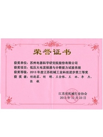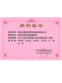 • 中國機械工業科學技術獎證書-科技進步獎三等獎