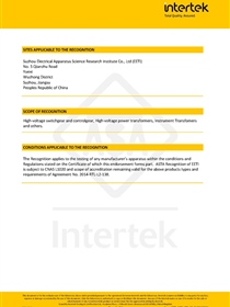 • 中國船級社產品檢測和試驗機構認可證書(電器產品)反面