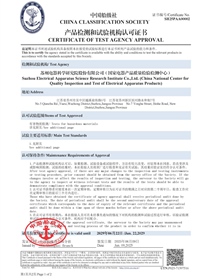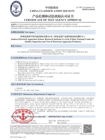 • 中國船級社產品檢測和試驗機構認可證書(電器產品)正面