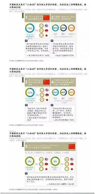 雖然中國制造商對工業4.0抱有很大的熱情和期望,但對實施具體策略有較多疑慮。只有57%的中國企業對工業4.0做好了充分的準備,遠低于美國(71%)和德國(68%)。