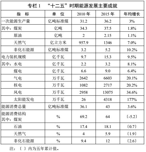 專欄 1 “ 十二五” 時期能源發展主要成就