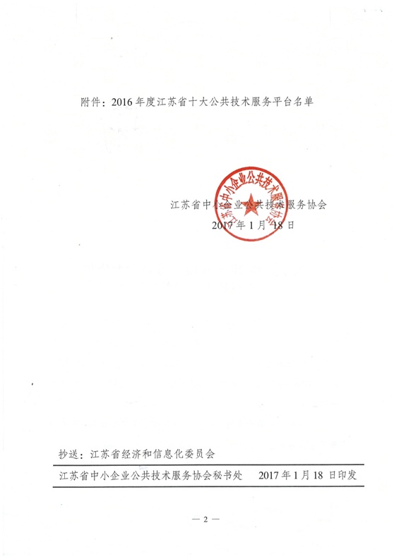 近期收文獲悉,我院參選的 “2016年度江蘇省十大中小企業公共技術服務平臺”評選活動已經結束,其中掛靠在我院的蘇州市中小企業電器產業檢驗檢測公共技術服務平臺成功入選。